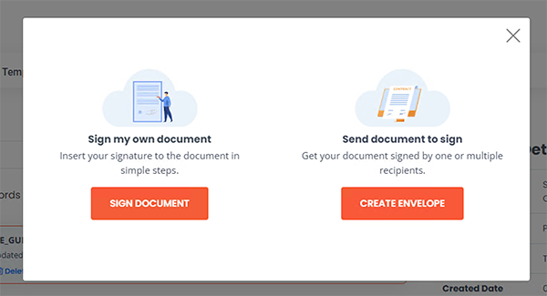 - Get started with clicking on the ‘Sign my own document’ or ‘Send document to sign’ option.